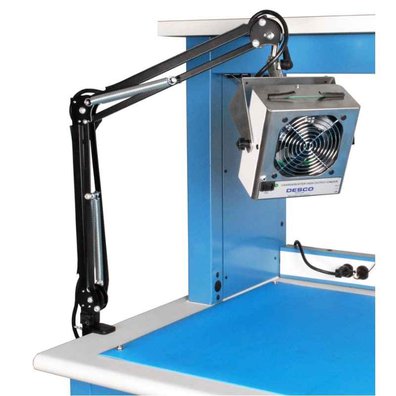 Allows operator to lift ionizer off of the bench to save work space - 3-Hinged, Spring Loaded, Articulating Arms with Tensioning Knobs