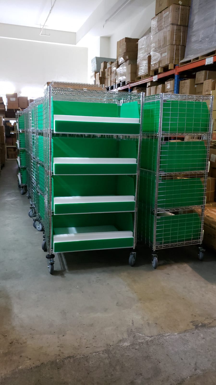 - Chrome Wire Storage Shelving has very lightweight clearing trolleys with braked castors for added safety.