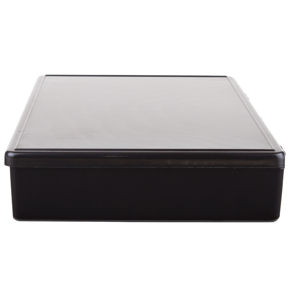 The 10 1/2″ x 6 3/16″ x 1 9/16″ (26.67 x 15.72 x 3.97 cm) 600/800 Series Conductive Box reduces electrical resistance and dissipates static-charge buildup to alleviate electrostatic discharge (ESD).