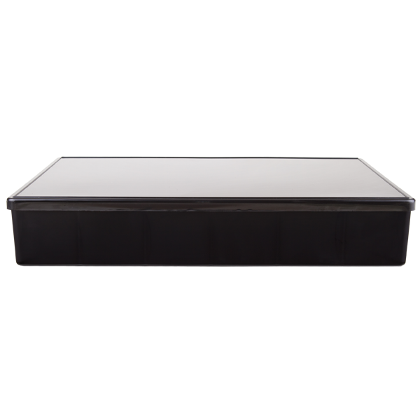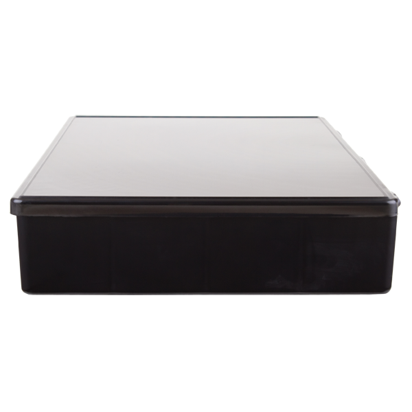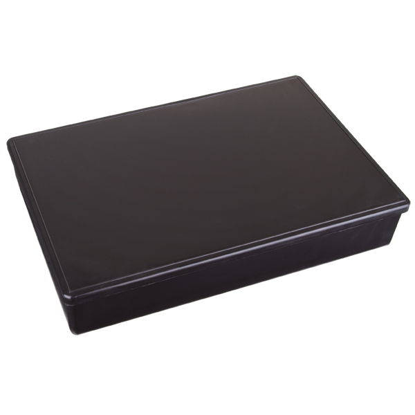 The 12 3/4″ x 8 1/2″ x 2 1/8″ (32.39 x 21.59 x 5.40 cm) 600/800 Series Conductive Box reduces electrical resistance and dissipates static-charge buildup to alleviate electrostatic discharge (ESD).