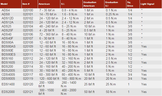 - Torque indicating signal light – standard on CDS, DDS and EDS models.