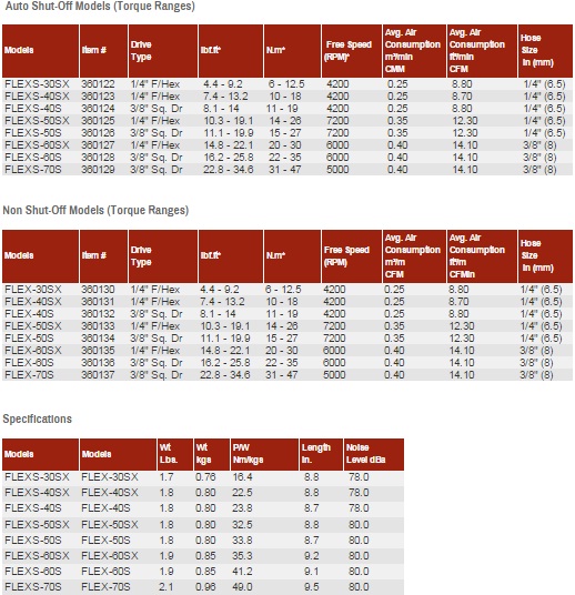 These rugged assembly tools increase productivity and enhance product quality through precision torque control and user comfort. The FlexPower Pulse Tools provide operators with an industry leading power-to-weight ratio, allowing for a smaller tool selection for greater torques giving operators a lighter tool with more torque capability. Built for durability with a superior O-ring design and specially designed pulse fluid FlexPower extends life between regular oil changes and provides more torque stability. Offers comfortable rubberized non-slip grips for easy handling and excellent thermal ergonomics. Low noise decibels, minimal vibration and low torque reaction.