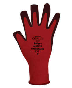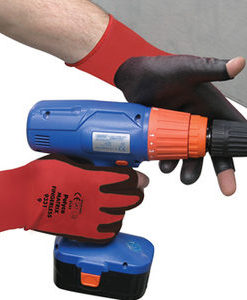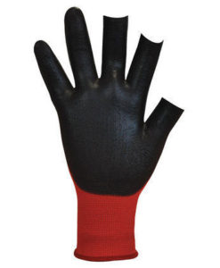 Seamless nylon liner for comfort Tight fitting with three open fingers for maximum dexterity Flexible three-quarter polyurethane coating Longer dip coating on palm for additional protection