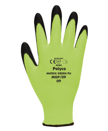 Seamless Knitted High Cut Resistant Liner with Glass Fibre, and a Polyurethane Palm Coating