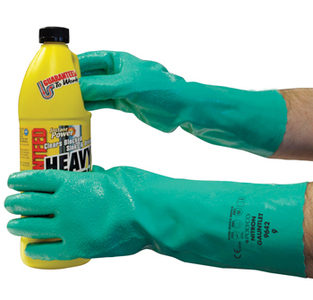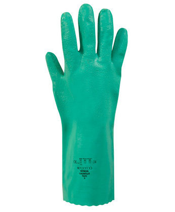 Good Grip The granular dip finish provides safe handling in wet and dry conditions Durable Hard wearing and resistant to abrasion Comfort Flexible nitrile coating on a cotton interlock liner Extra Long For added Protection Chemical Resistant To a wide range of detergents and solvents