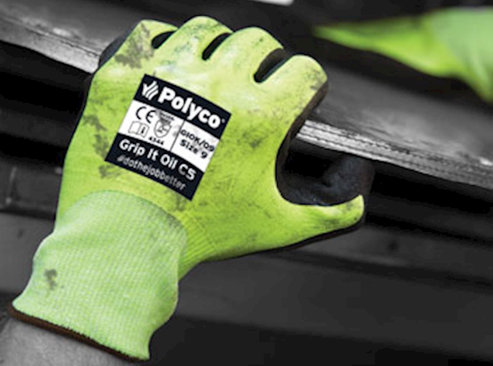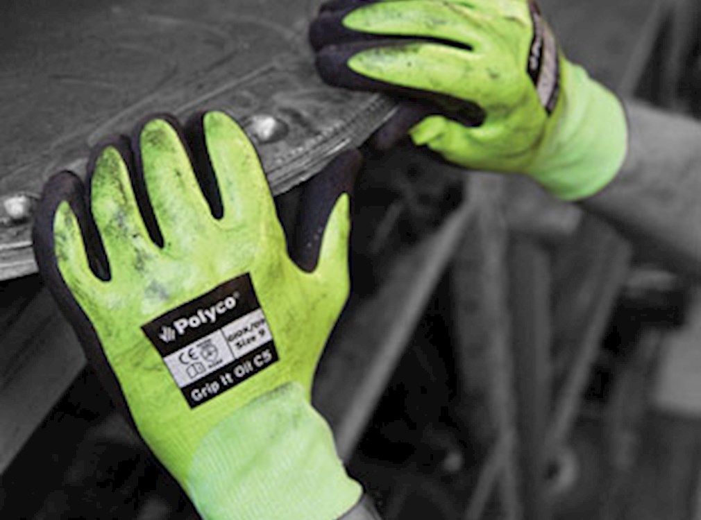 Polyco Grip-It Oil C5Â Cut Resistance Gloves have a high visibility seamless cut resistant liner with a dual nitrile coating.