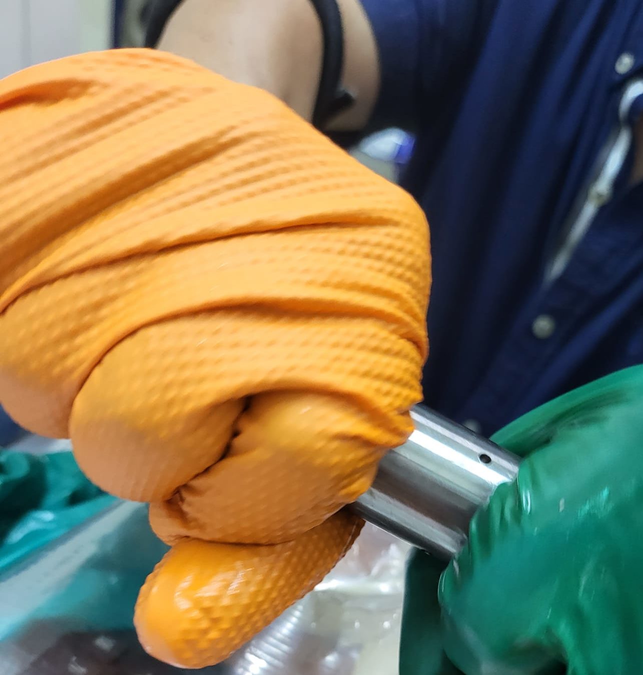 Thick Nitrile Gloves with Grip from Polyco, the Finite Orange HD nitrile gloves really allows technicians and engineers to safely remove parts that are covered with oil or water, it allows them to have the solid grip while troubleshooting, change and amend various parts of the machines.