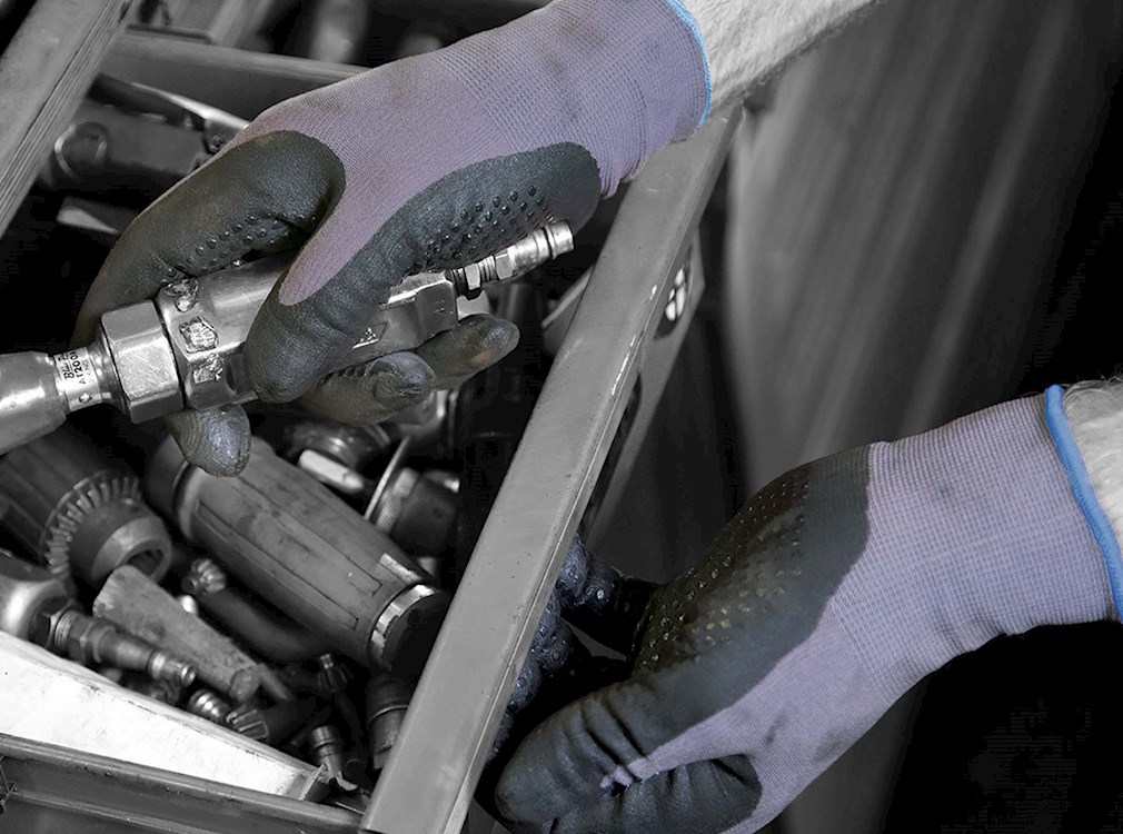 Grip: The foamed nitrile coating channels oils and liquids away from the surface, ensuring superb wet grip