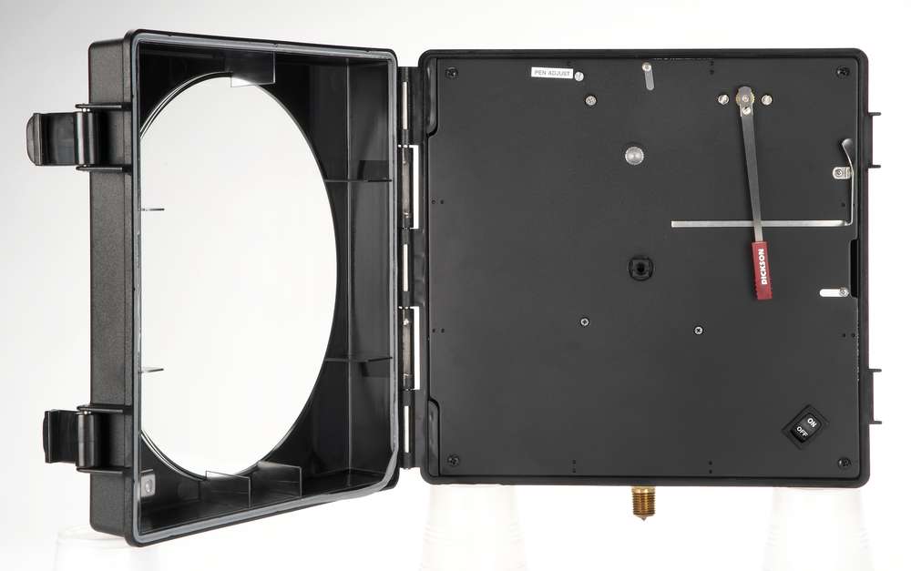 Pressure recording with a full 8" (203mm) diameter chart. These 8" (203mm) easy-to-ready pressure charts show 3x as much data as our 4" (101mm) and they are contained in a splashproof enclosure. Create a permanent visual record of your pressure data with the greatest detail.