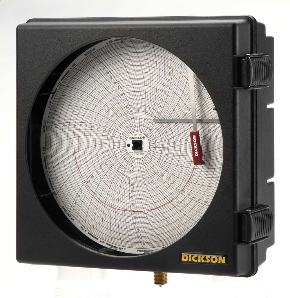 Pressure recording with a full 8" (203mm) diameter chart. These 8" (203mm) easy-to-ready pressure charts show 3x as much data as our 4" (101mm) and they are contained in a splashproof enclosure. Create a permanent visual record of your pressure data with the greatest detail.