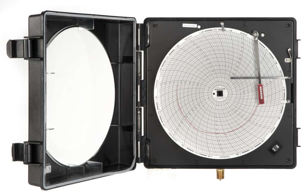 Pressure recording with a full 8" (203mm) diameter chart. These 8" (203mm) easy-to-ready pressure charts show 3x as much data as our 4" (101mm) and they are contained in a splashproof enclosure. Create a permanent visual record of your pressure data with the greatest detail.