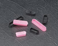 Series DCF connector caps protect electrical connectors from dust and impact damage. DCF-06 and DCF-08 are designed to fit D-Subminiature connectors with flared shells while DCF-07 is designed to fit D-Subminiature power connectors with flared shells. Series DCF is available in a black conductive polyethylene copolymer or pink static dissipative ethylene vinyl acetate. All static dissipative parts meet the static decay requirements of MIL-PRF-81705D and surface resistivity is less than 1×1012 ohms/sq. All conductive parts meet the static decay requirements of MIL-PRF-81705D and surface resistivity is less than 1×105 ohms/sq.