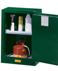 Compac Safety Cabinets fit almost anywhere and provide protection even where space is at a premium. These cabinets are ideal when storing lesser quantities of pesticides at a workstation or adding to existing storage capacities. Only 23-1/4 in. (591-mm) wide, they hold a full 12-gallons (45-L) of liquids. Pesticides present a substantial danger to people and the environment when improperly stored. Pesticide safety cabinets allow segregation of liquids stored at the worksite, eliminating the potential for drips and spills during the transfer of pesticides. Dissimilar pesticides stored separately prevent one from contaminating another or the accidental use of the wrong chemical. Safety cabinets that are specifically designed to house these types of chemicals offer features including sturdy double-wall, 18-gauge steel construction with 1½” of air space and dual flame-arresting vents. The three-point automatic latch with keyed lock prevents unauthorized access. Steel shelves fitted with corrosion-resistant polyethylene trays adjust on 3″ (77mm) centers to accommodate a wide variety of containers. Manual-close door(s) opens to a full 180 degrees and self-latches when pushed closed. Self-close door(s) shuts and latches automatically when a fusible link melts at 165°F (74ºC) under fire conditions. Unique, concealed self-closing mechanism offers obstruction-free access to contents. All door styles meet OSHA and NFPA 30; self-close door styles also meet NFPA 1 and the International Fire Code. All cabinets are FM approved and come with a ten-year warranty.